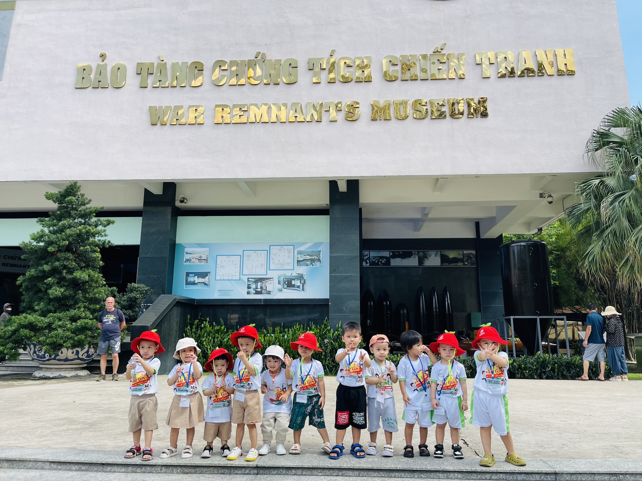 Tiếp tục hành trình, các bé đến với Bảo tàng Chứng tích Chiến tranh, nơi trưng bày nhiều hình ảnh, tư liệu và hiện vật về chiến tranh Việt Nam. Tại đây, các bé được tiếp xúc với những mảnh vỡ bom đạn và các bức ảnh về chiến tranh, giúp các bé có cái nhìn sâu sắc hơn về sự hy sinh của ông cha ta trong công cuộc bảo vệ Tổ quốc.